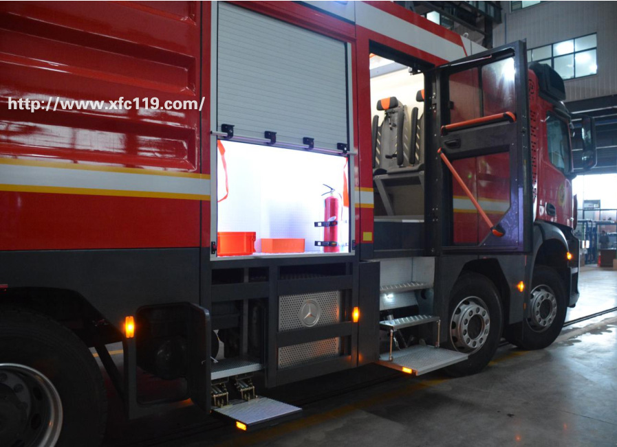 江特牌JDF5390GXFSG180水罐消防車 江特牌JDF5390GXFSG180型水罐消防車,整車主要由梅賽德斯-奔馳Arocs4158型消防車專用底盤. 獨(dú)立乘員室.水罐.泵室.泵送系統(tǒng).智能集 成控制系統(tǒng).水槍.水炮.隨車消防器材以及其他附屬設(shè)施組成。整車改裝后載荷分配均勻, 質(zhì)心位置和穩(wěn)定性計(jì)算精確,內(nèi)部空間布局合理, 能充分滿足操作人員的使用要求。 |