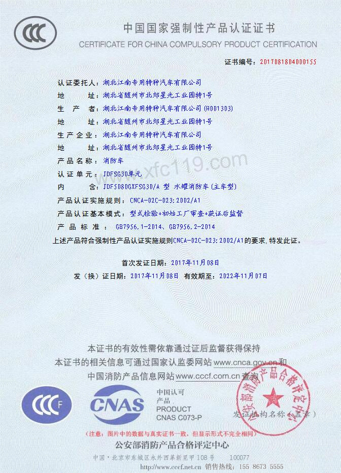 我公司湖北江南專用特種汽車有限公司國五消防車3C于2017年11月08日更新一批消防車3C,目前在眾多消防車廠家里面國五消防車車型3C算比較齊全的消防車龍頭企業,這也證明了我公司的國五消防車車型質量,技術方面全面得到國家認可和好評。歡迎新老客戶來我廠考察選購消防車車型及邀約我公司參加各公司各政府單位消防車項目招標活動。