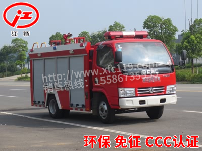 該車的另外一種國五消防車車型為雙排的小東風2600軸距的水罐消防車車型,這樣設計是方便救火人員乘坐,有限的長度加大了整車的使用率,上戶噸位0.6噸,可做到1.2-1.5噸。兩款車型都降低了對使用者駕照的要求,方便了企業和消防部隊對消防車使用的一些硬性條件。