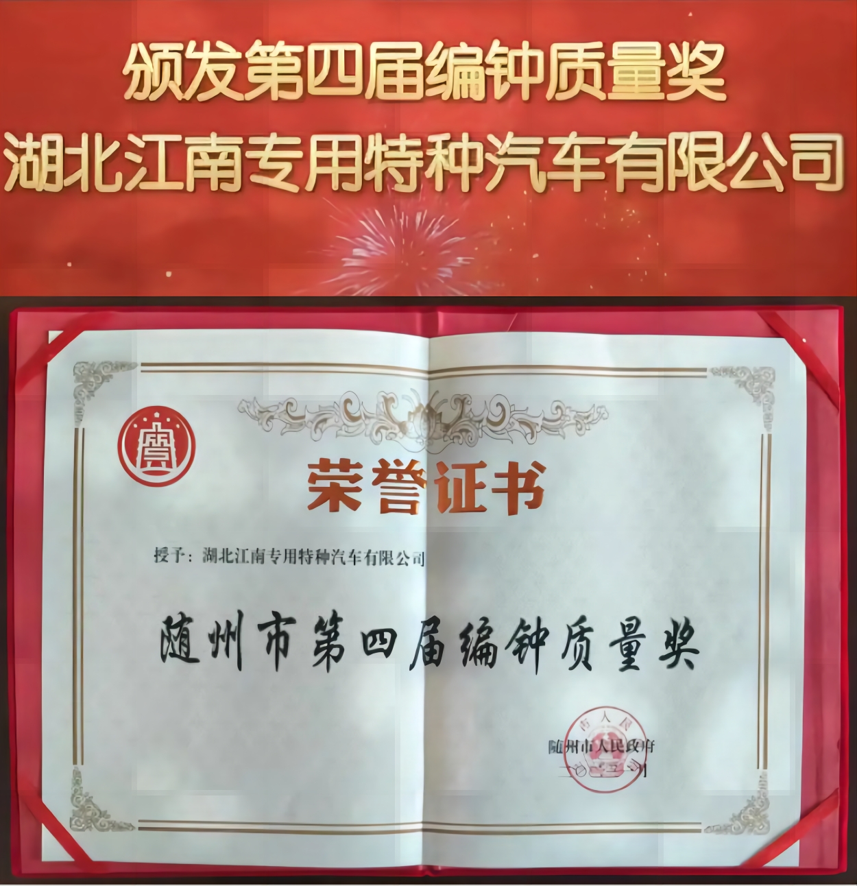 我公司湖北江南專用特種汽車有限公司是一家專業生產銷售消防車及應急救援車輛的消防車廠家,我司一直專注研發高性能消防車車型,公司一直秉承創優質服務企業; 造用戶滿意產品; 樹國內知名品牌的服務理念,獲得新老客戶的一直好評。經過公司的不懈努力終于榮獲“隨州市第四屆編鐘質量獎”。