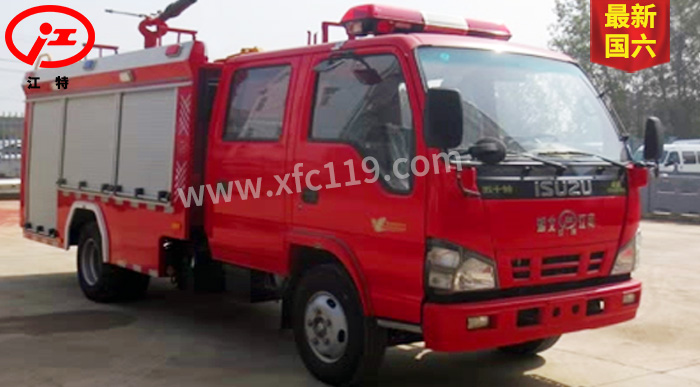 JDF5071GXFPM20/Q6型泡沫消防車為國六消防車車型,采用五十鈴QL1070BUHWY底盤改裝而成。整車由消防員乘員室和車身兩大部分組成,乘員室為原裝雙排,可乘坐2+3人,該車為內倉罐結構,車身前部為水罐+器材箱,后部為泵房。載液罐體為優質碳鋼,與底盤采用彈性連接,載水1385kg,泡沫容積637kg,裝備了CB10/30型消防泵,額定流量30L/S,車頂安裝的PL24型車用消防炮。該車輛結構緊湊,配置完備,機動性強,能夠及時應對企業,社區或重點消防單位的火情,可以第一時間形成小型戰斗力進行初期火災的撲救和人員疏散撤離。可廣泛應用于消防救援站,政府專職消防隊,企業專職消防隊等。