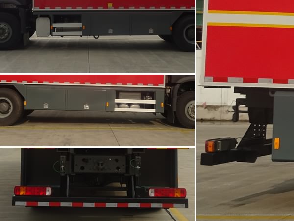 ABS型號:4460046300;ABS生產企業:威伯科汽車控制系統(中國)有限公司;所用材料材質、 連接方式以及后部防護裝置的主要尺寸參數(斷面尺寸和離地高度):側防護結構材料: 鋁合金,連接方式:焊接;后防護裝置材料:Q235,截面尺寸:120×120mm,與車輛連接方式: 螺栓連接,后防護離地高度:460mm;專用功能及裝置:主要專用裝置有消防器材; |