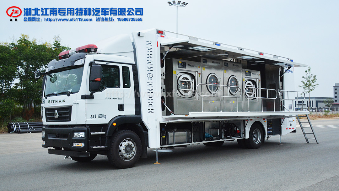 湖北江南專用特種汽車有限公司“江特牌”被服洗滌車系列產(chǎn)品,專用于提高野外執(zhí)行任務(wù)保障能力。廣泛適用于軍隊(duì)、公安特勤、消防、醫(yī)療衛(wèi)生、搶險(xiǎn)、應(yīng)急救援等多種用途。車內(nèi)配置齊全,完全滿足在野外搶險(xiǎn)救援、醫(yī)療救護(hù)、救災(zāi)、突發(fā)事件等情況下的被服洗滌保障用途。整車主要由機(jī)動性能較高的二類底盤、兩側(cè)拓展翻板系統(tǒng)、水電保障系統(tǒng)、洗滌設(shè)備等組成。該車主要特點(diǎn):