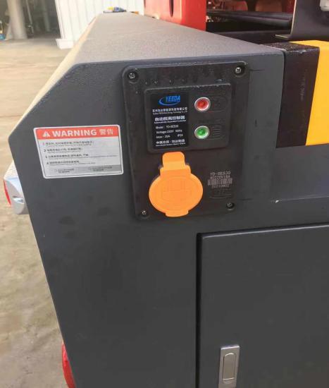 5.10自動(dòng)分離式充電充氣裝置:自動(dòng)充電充氣裝置采用用蘇州怡達(dá)新能源科技有限公司YD-SES30A型自動(dòng)脫離充電充氣系統(tǒng),由自動(dòng)繞線器提供的220V電源,通過分離式彈性插頭給車輛供電供氣,當(dāng)電瓶充滿、儲(chǔ)氣罐壓力達(dá)到設(shè)定值后系統(tǒng)自動(dòng)停止工作,當(dāng)需要出動(dòng)車輛時(shí),駕駛員只需打開啟動(dòng)鑰匙,車輛啟動(dòng)時(shí)分離式彈性插頭自動(dòng)與車輛充電充氣接口分離,當(dāng)出現(xiàn)異常情況不能自動(dòng)分離時(shí),會(huì)發(fā)出聲光報(bào)警提醒駕駛員查看故障或手動(dòng)分離,達(dá)到快速出動(dòng)車輛的目的。