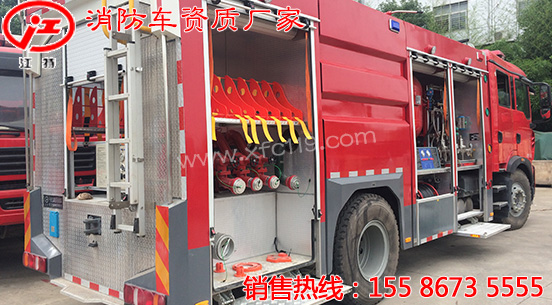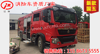 此圖片為新款國五豪沃單橋2噸干粉泡沫水三連用消防車